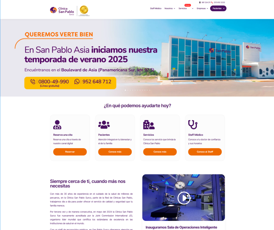 La Red de Clínicas San Pablo contaba con 13 sitios web distintos, cada uno con diseño, estructura y tono diferentes. Los pacientes tenían dificultades para: